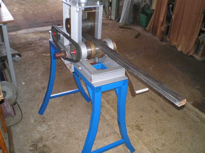 В общем и целом, собирают самодельные гибочные станки для профильных труб из того, что имеется под рукой или того, что найдут/купят недорогого. Кто имеет возможность — вытачивает ролики, вставляет подшипники. У кого такой возможности нет, используют то, что есть — вплоть до втулок от велосипедных колес. В целом надо понять конструкцию и