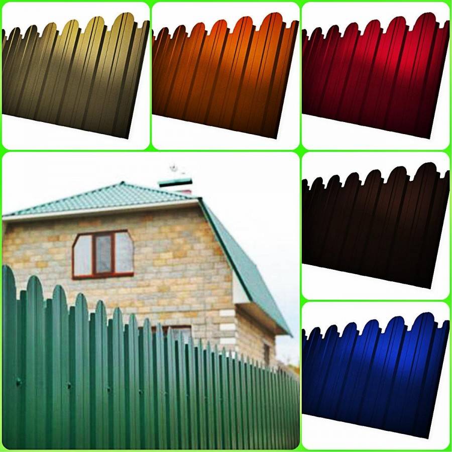 Широкая гамма цветов позволяет подобрать дизайн забора из профнастила в гармонии с окружающим дачным ландшафтом и частным домом.