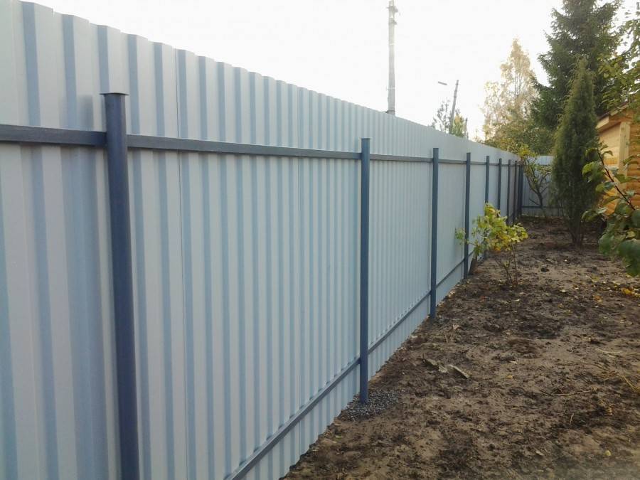 Установка забора из профлиста под дерево своими руками