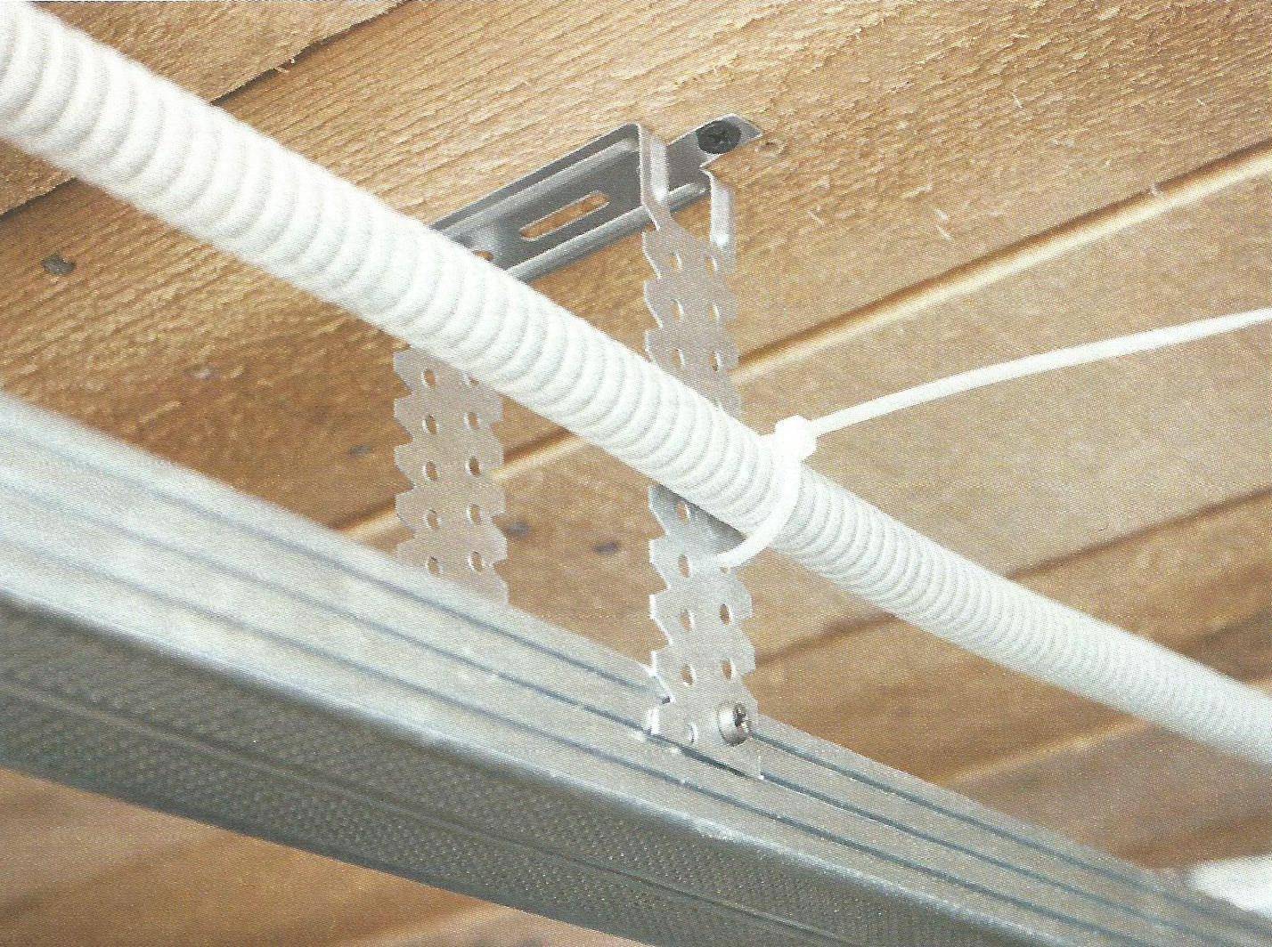 Их устанавливают на металлическую или пластиковую обрешетку. Такая конструкция обеспечивает легкий монтаж проводки, позволяет получать доступ к кабелям в любой момент. Провода крепят как к плитам перекрытия, так и к обрешетке.