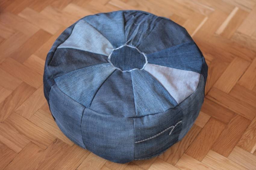 Ваш пуфик готов. Такой пуфик не выдерживает большой вес и не предполагает, чтобы на нем стояли. Его легко можно перемещать в любую точку помещения.