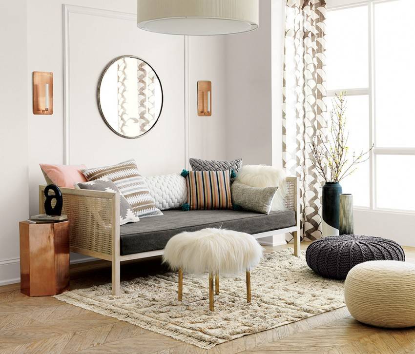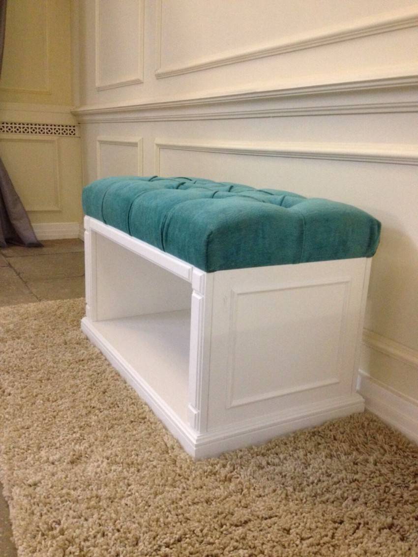 Удобно поставить такой пуфик в прихожей, где можно хранить обувь или мелочи.