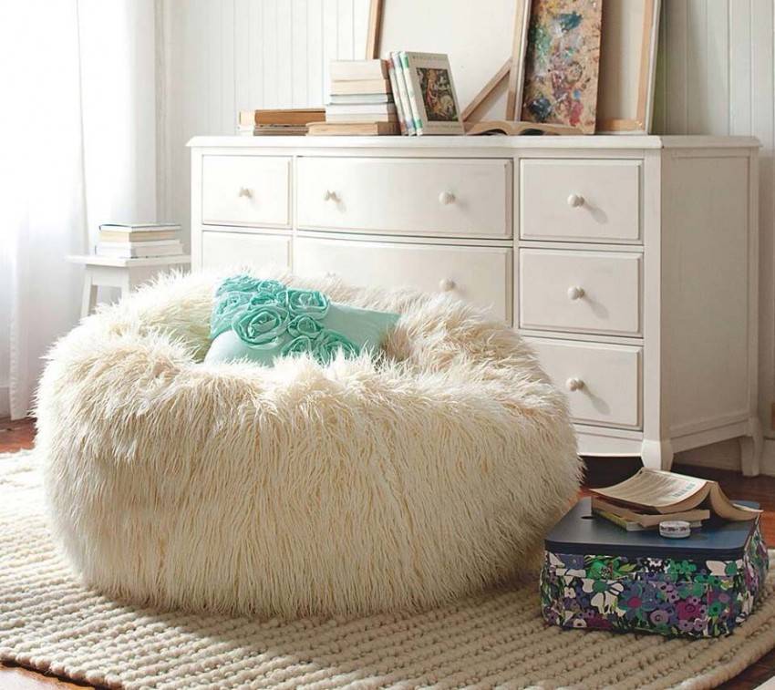 Мягкий пуфик в основном шьют или вяжут для детей. Ребенку удобно такой пуфик перемещать. На нем удобно не только сидеть, но и лежать.