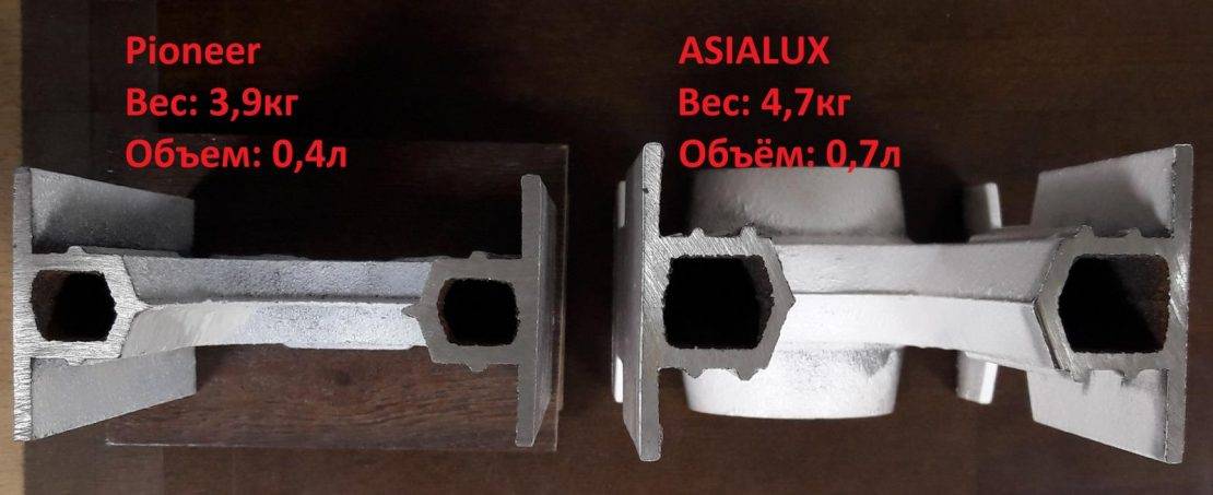 Это мнение ошибочно хотя бы потому, что уровень теплоотдачи алюминия гораздо выше чем, например, у чугуна. Сечение компенсируется площадью оребрения. Теплоотдача алюминиевых радиаторов зависит от различных факторов, в том числе и от используемой модели и может составить 137 – 210 Вт.