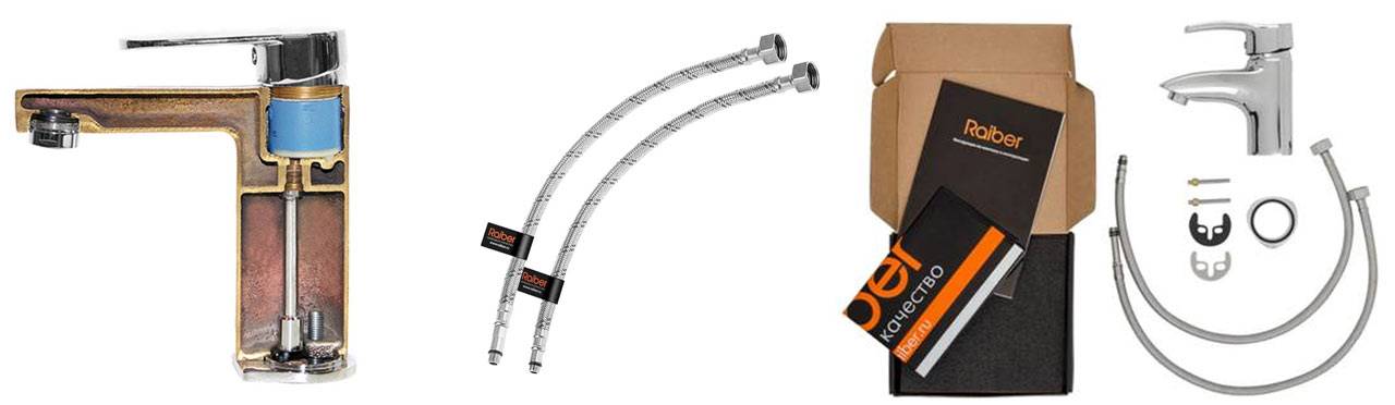 пример среза, подводки и комплектация смесителя Райбер