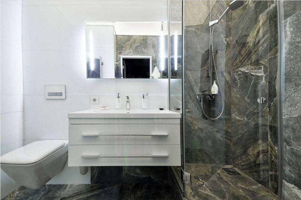 - СВОБОДА ВЫБРАТЬ ФОРМУ — душевую зону можно расположить практически в любом месте ванной комнаты, например, в труднодоступной нише, где было бы сложно разместить другую технику или мебель, а тем более стандартную. поддон душевой с кабиной. Более того, вы не ограничены размерами кабин и душевых поддонов, имеющихся на рынке.