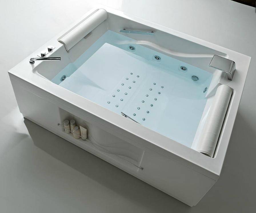 Самую большую по объему ванну этой группы производит итальянская компания Castalia: объем модели Emma (180*85) составляет 200 л. А у ванны фирмы Jacob при большей ширине (90 см) объем достигает лишь 170 л. Причина небольшой емкости – наличие встроенных подлокотников. Относительно глубины ванны 180 см не могут похвастаться большим разнообразием – это показатель составляет 42 — 45 см.