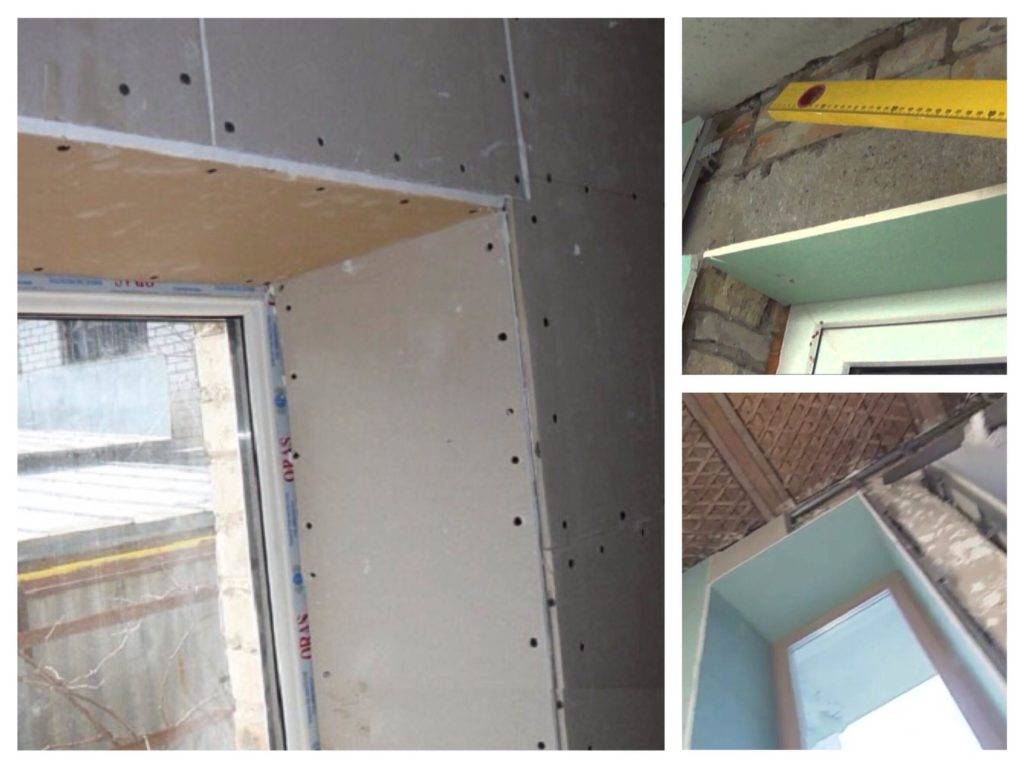 Сам гипсокартон требует установки каркаса, что несколько сужает проём окна. Если присмотреться к фото, выложенных на ремонтных сайтах, то можно заметить, что этот способ отделки довольно трудозатратен. Помимо монтажных работ, предстоит выполнить и малярные, так как места крепления и стыки требуют полной монолитности. А этого можно добиться при тщательной шпаклёвке поверхности.