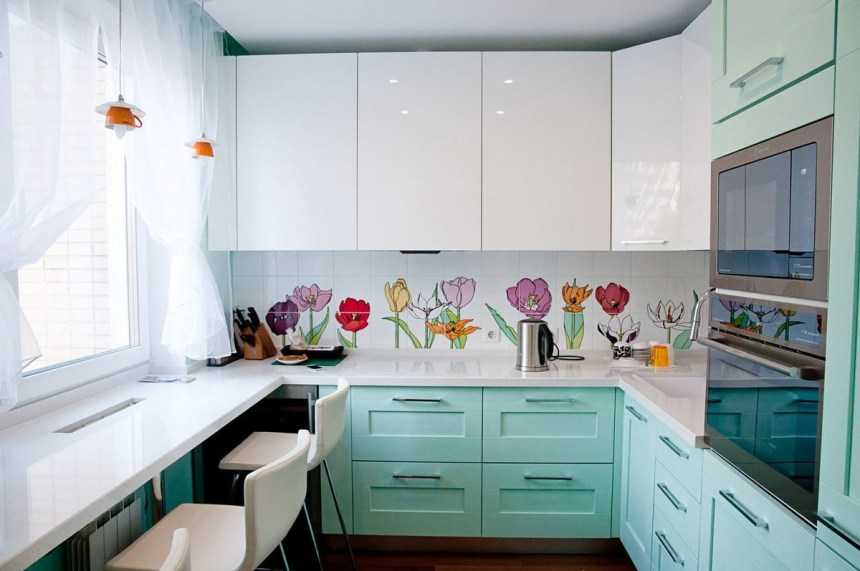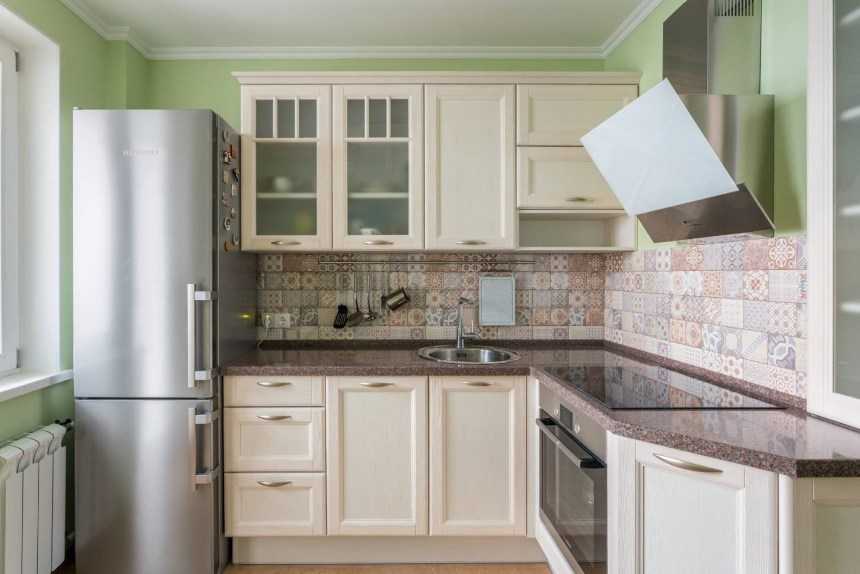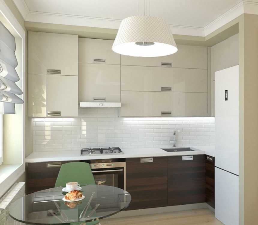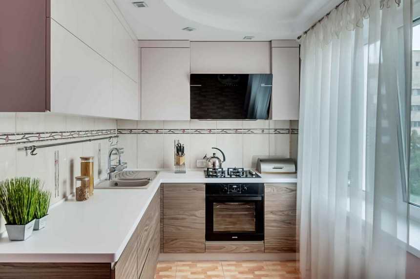 Оформление маленькой кухни по Г-образному проекту, фото обзор: