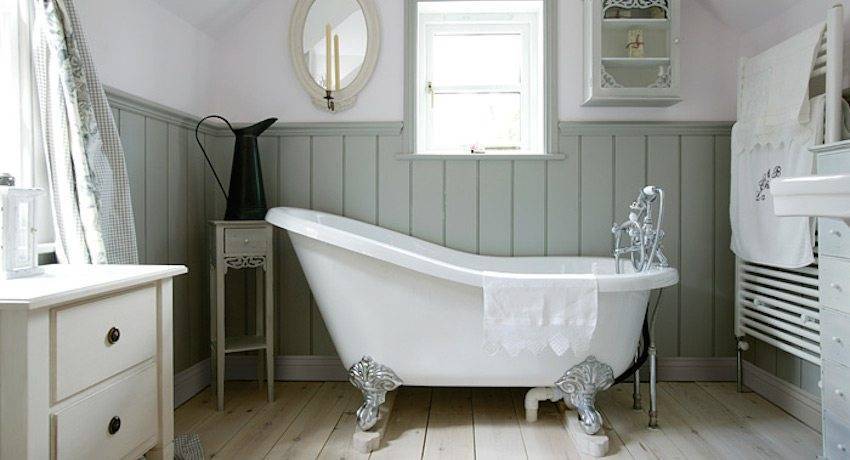 Прованс считается духом простоты и комфорта. Такой интерьер легко создается за счет обшивки пластиковыми панелями. Интерьер следует создавать в светлой пастельной цветовой гамме, мебель должна быть простая. Дополнить ванную комнату можно декором из керамики и фарфора, а также узорами в цветочной тематике.