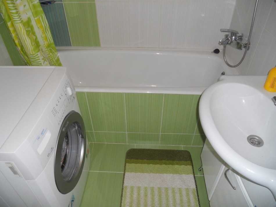 Однако, творческий подход к дизайну ванной в хрущевке, он потому и творческий, что не требует принесения в жертву одного удобства ради другого. То есть, при желании и раковину и машину можно совместить, не пожертвовав ни единым сантиметром полезной площади.