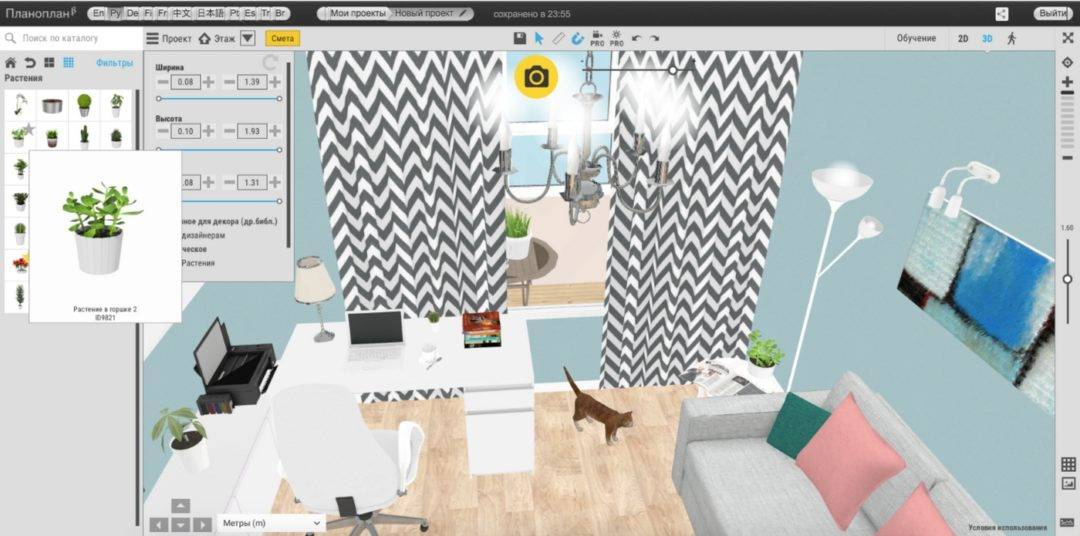 В каталоге ты найдешь массу готовых дизайн-шаблонов, которые запросто приспособятся под индивидуальные размеры конкретного помещения. Используя элементарные инструменты, можно полностью смоделировать обстановку, начиная от крупногабаритного мебельного гарнитура, заканчивая мелким декором и аксессуарами.