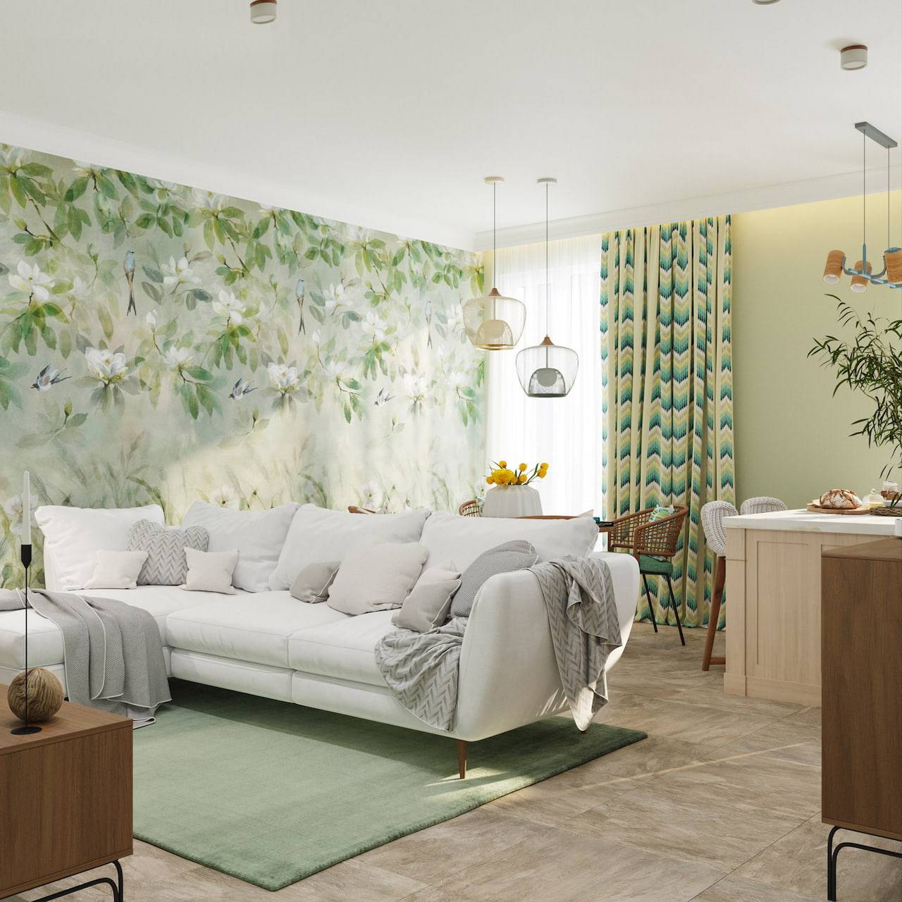 Сочетание цвета штор с обоями