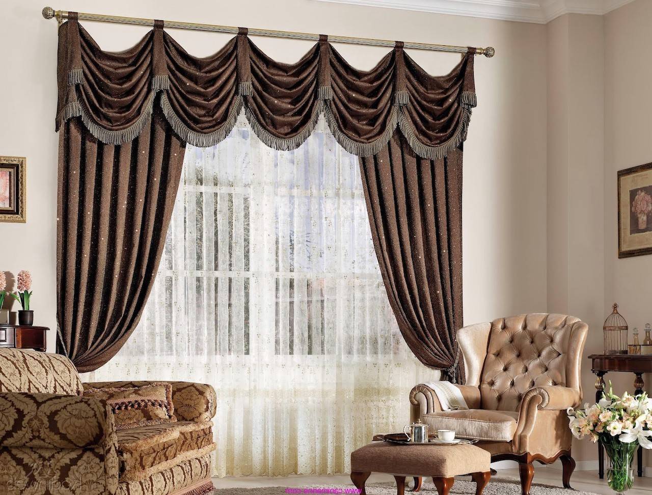 Тонкие полотна комбинируют с плотными материалами, синтетические ткани – с натуральными. Пышное оформление хорошо смотрится на двухстворчатых кухонных окнах, лаконичные варианты – на небольших проемах. Романские занавеси с различными видами конструкций сочетаются и между собой.