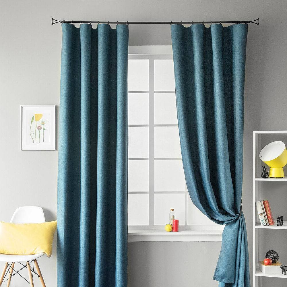 - Яркий мирный синий цвет. Если мебель и стены будут выполнены в одной гамме, шторы станут ярким элементом и станут акцентом.