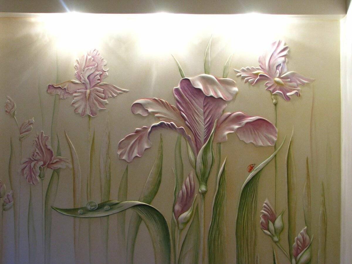 Не менее выразительной и интересной, среди техник объемного рисунка, является и рельефная роспись стен. Благодаря этой технике можно добиться потрясающих результатов, которые станут настоящим олицетворением оригинального подхода к оформлению интерьера и утонченности вкуса хозяина дома.