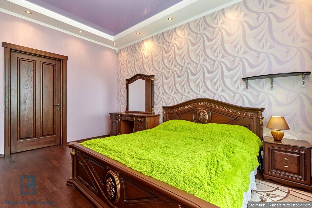 Для оформления небольшой спальни используйте оттенки белого. Сделайте в этом цвете пол и потолок, а обои скомбинируйте: сливочные и пудровые, слоновая кость и пурпурные. Это могут быть вертикальные, горизонтальные полосы или стены разных цветов.