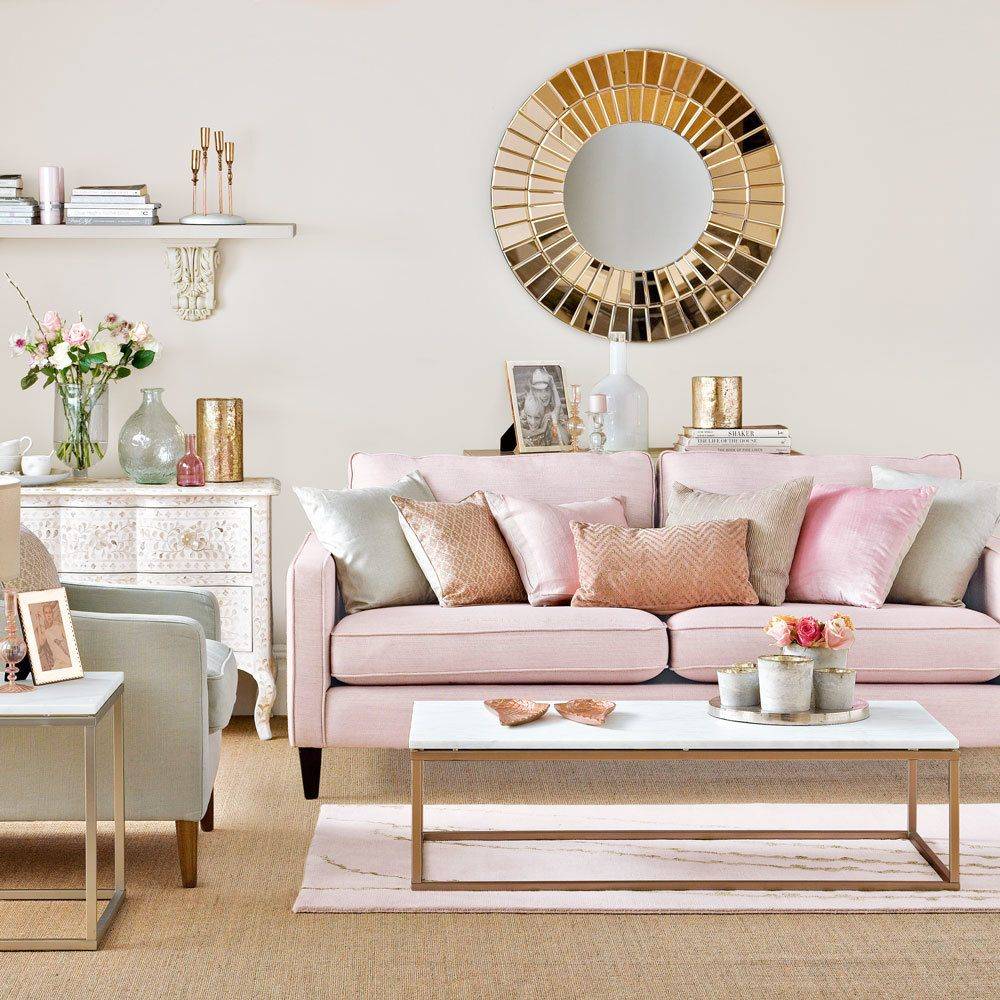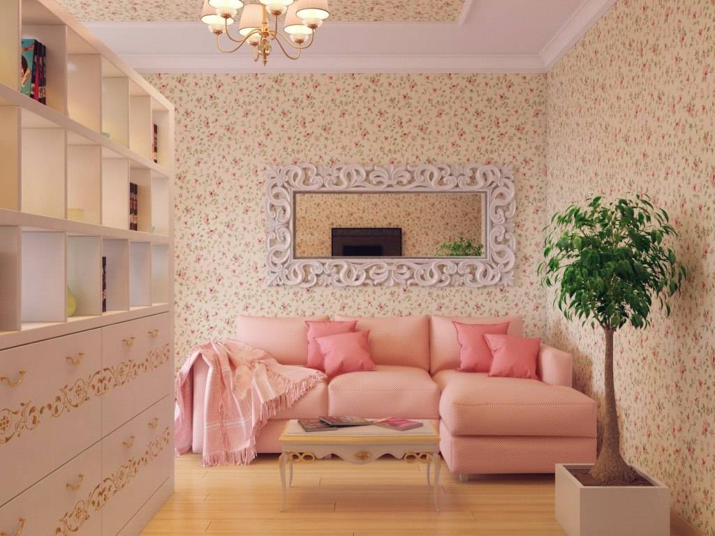 В интерьере гостиной стилисты рекомендуют использовать различные оттенки розового: