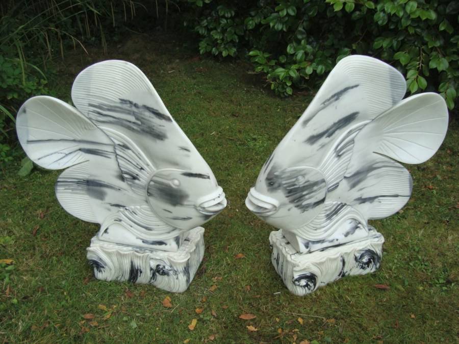 Большой популярностью пользуется керамика. Эти фигурки можно приобрести в специализированных магазинах, причем любых форм и размеров. Многих привлекают пластиковые зверюшки и сказочные существа. Они имеют свои преимущества: стоимость их невысока, а благодаря малому весу, их можно перемещать на участке как угодно и менять экспозицию.