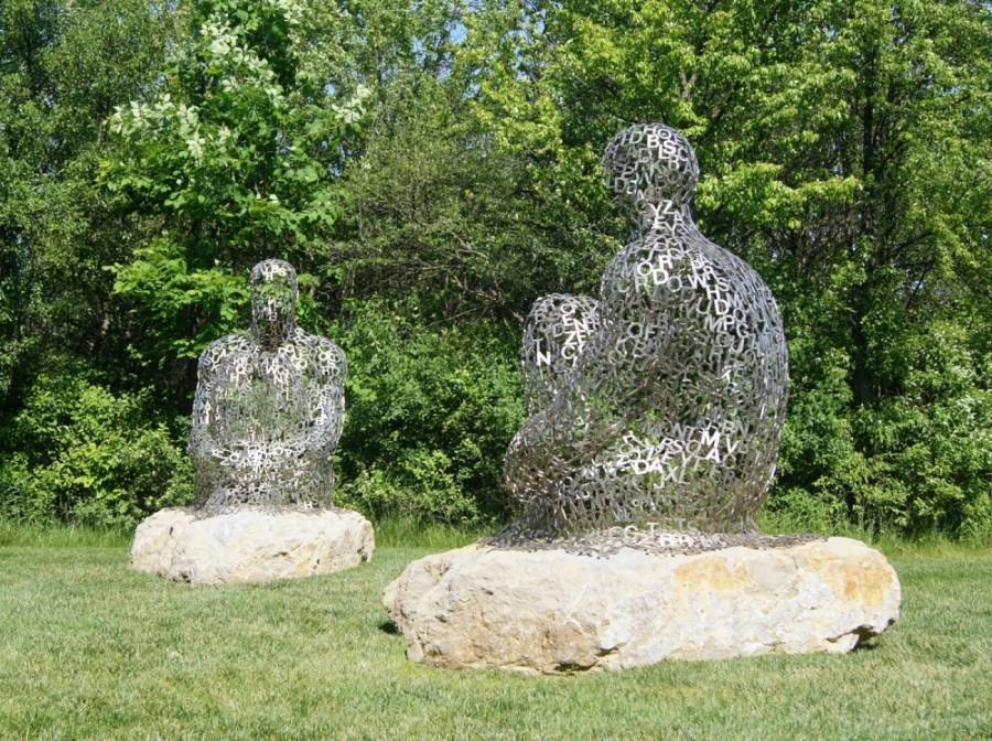 Металлические скульптуры редко используются на частных приусадебных участках. Чаще всех для создания фигур используют медь и бронзу, долговечные и эффектно выглядящие металлы. Хорошо проработанная, изысканная композиция из бронзы – выбор далеко не из дешевых, но и прослужит такое украшение не один десяток лет, не теряя своей привлекательности.