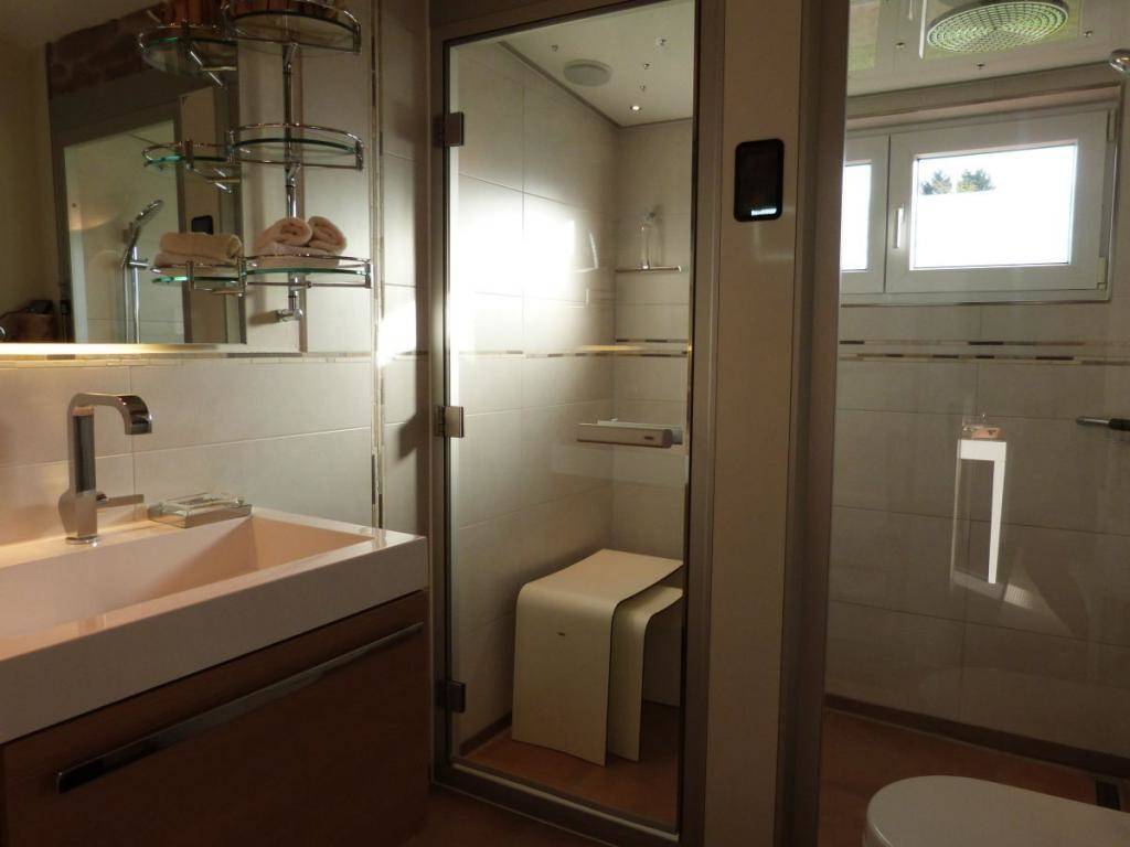 Паровые кабины довольно компактные по сравнению с другими видами домашних саун. Преимуществом таких устройств также считается возможность совмещать банные процедуры с обычным мытьем под душем.