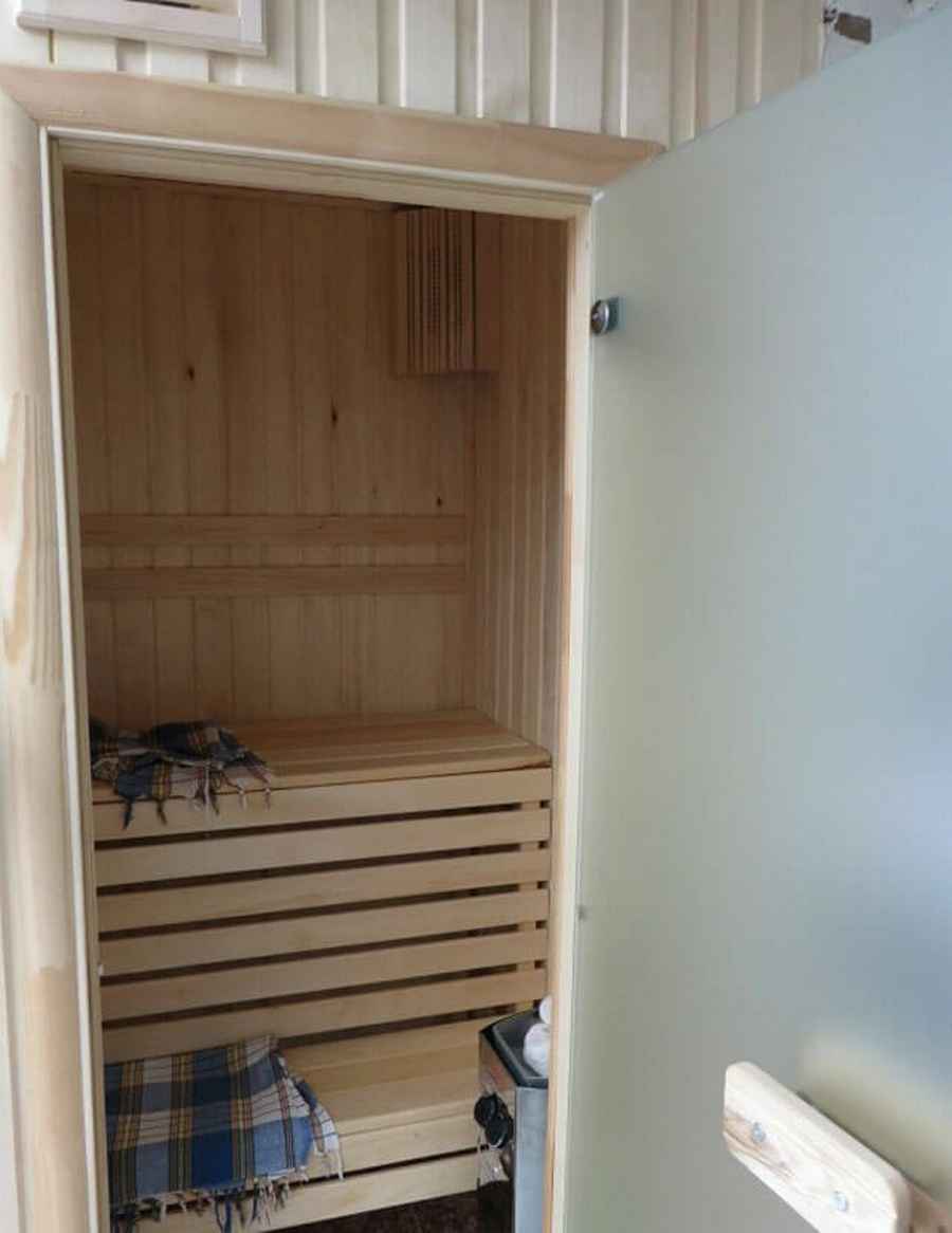 Помещение под сауну должно быть не менее 1,8×2 м. Это позволит без труда разместить в нем лежанку. Такая мини-сауна станет удобным и практичным решением для квартиры.
