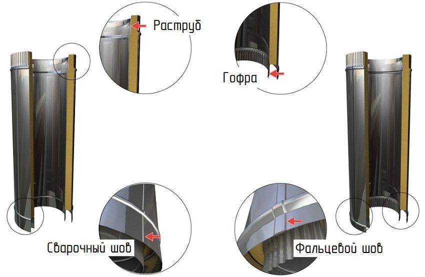 Хотя принципы монтажа сэндвич-труб и одностенного дымохода похожи, есть несколько существенных отличий: