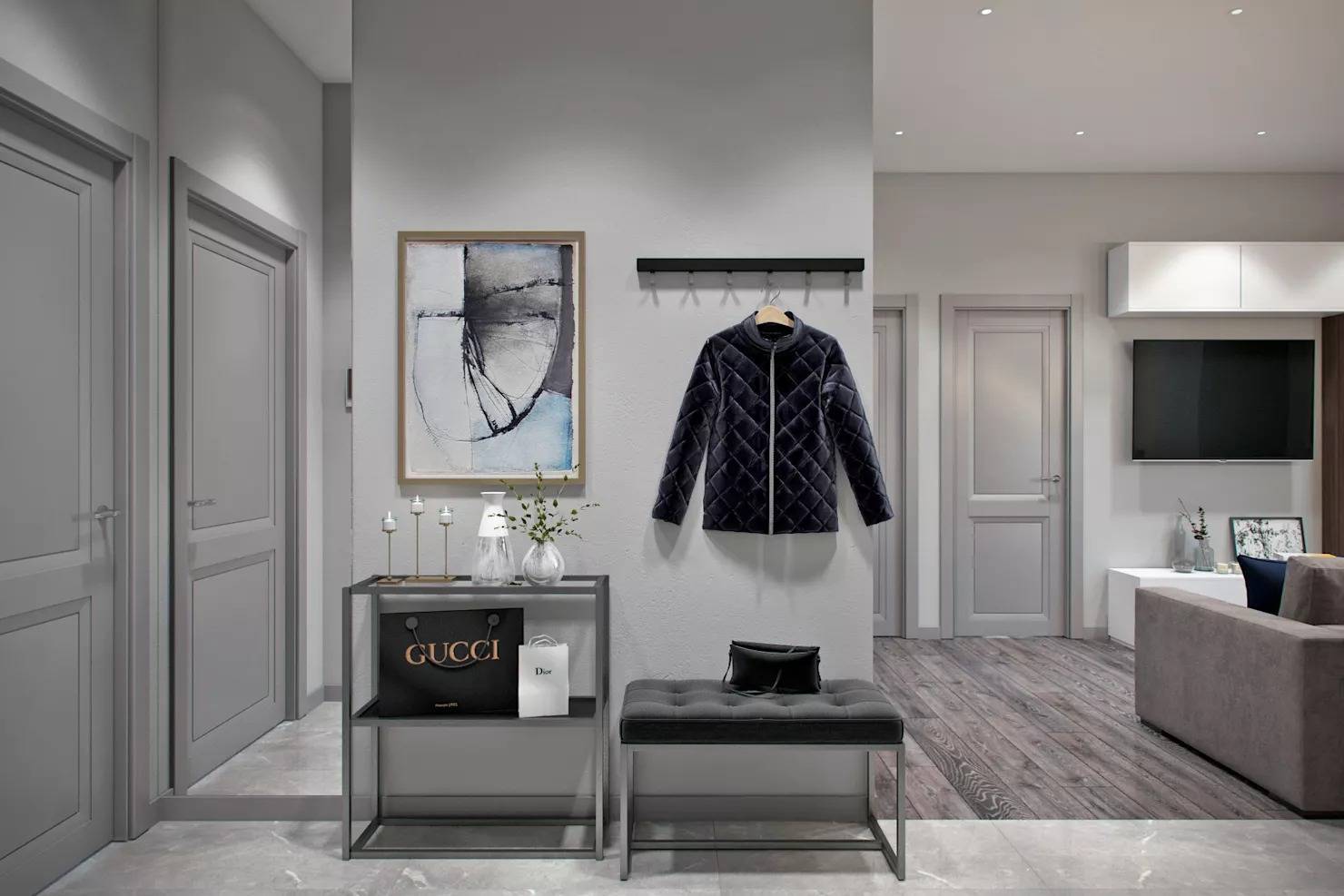 Дополнительные преимущества, когда прихожая в серых тонах: