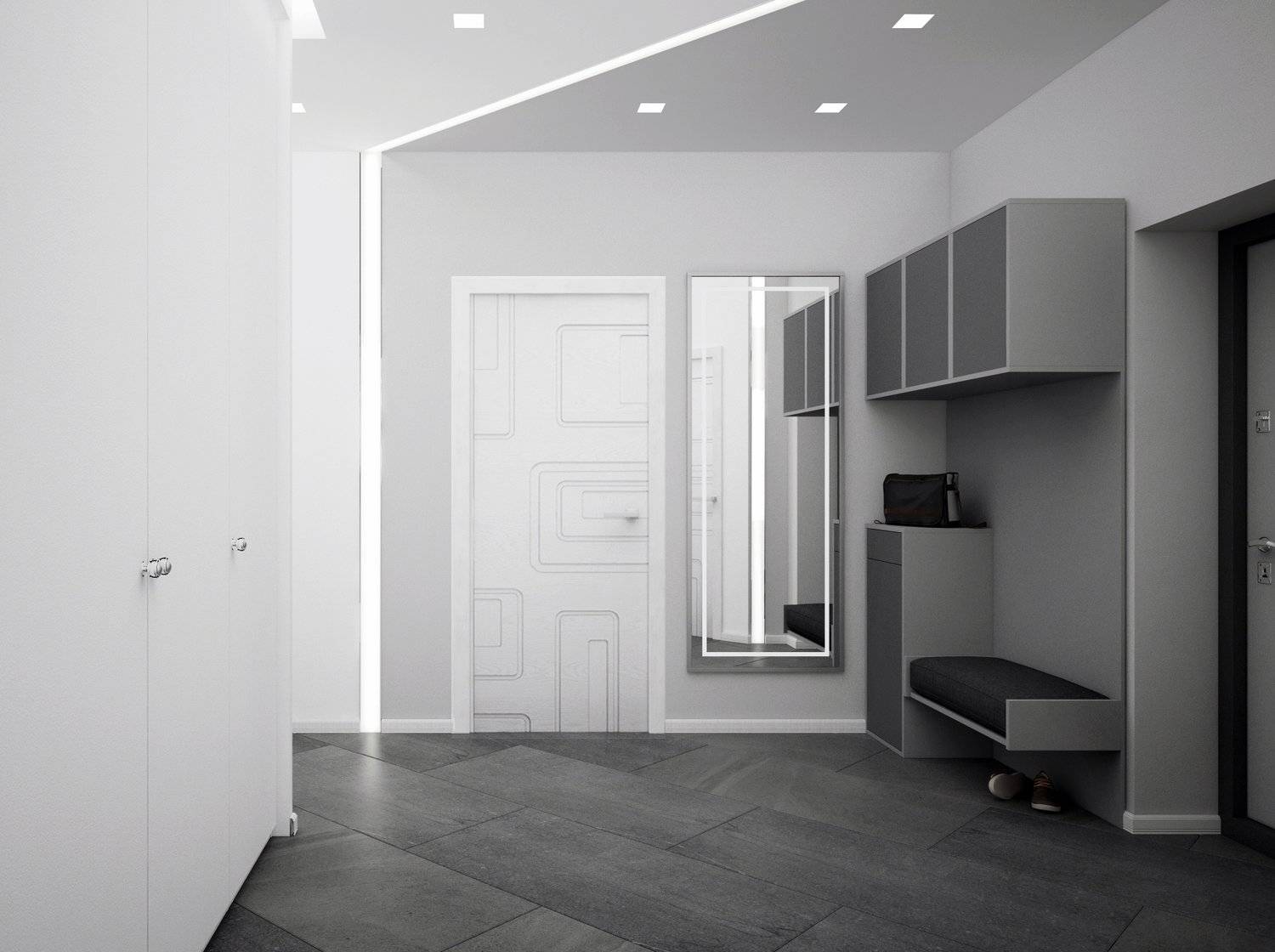 Декор прихожей в серых тонах: матовые и глянцевые поверхности