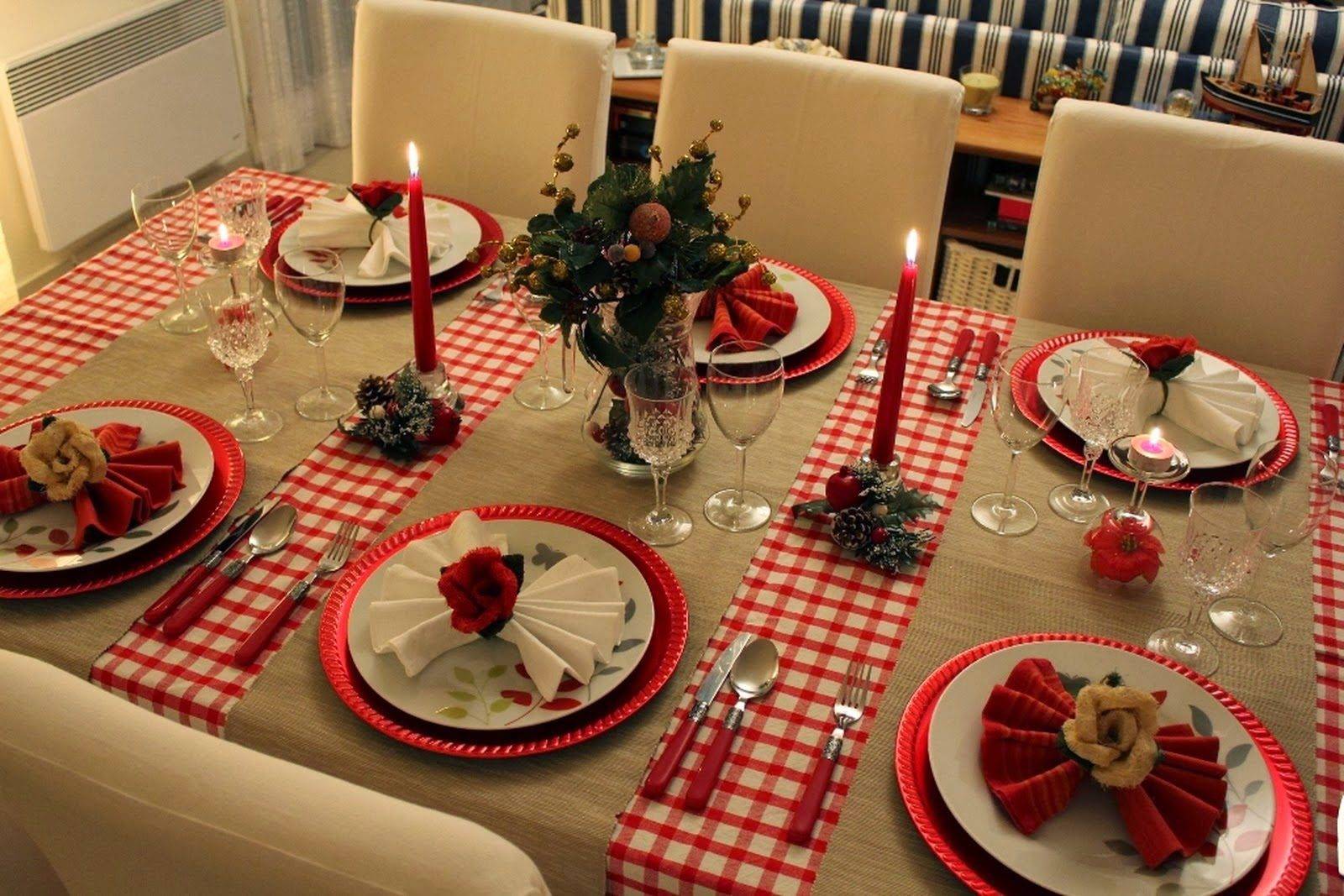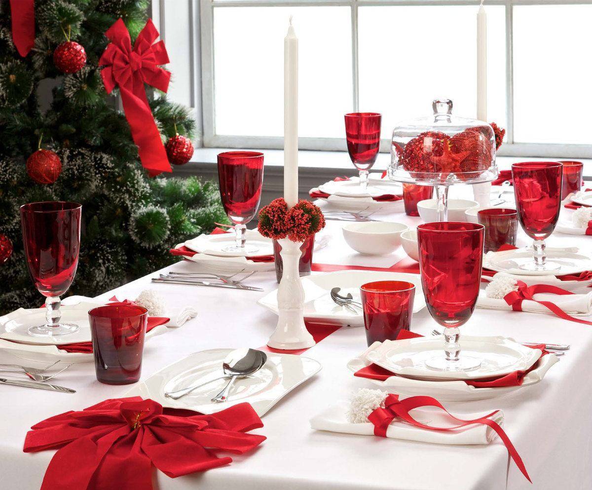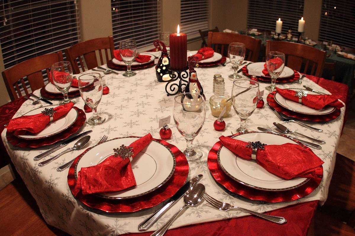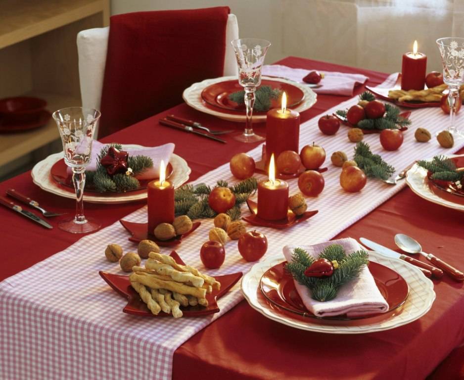 Новогодняя сервировка стола 2019 в красном цвете