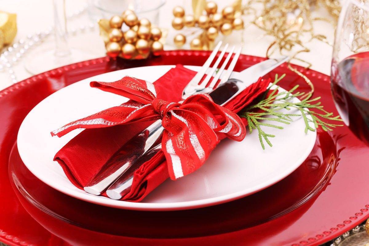 Красный цвет – безусловный фаворит новогоднего торжества, поэтому он должен обязательно присутствовать в оформлении праздничного стола