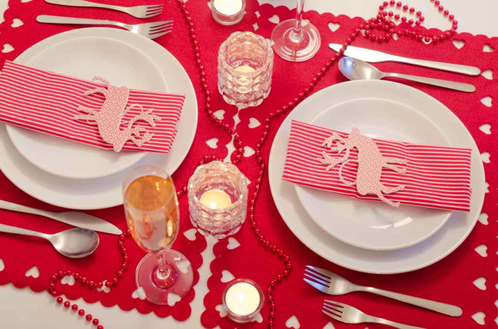 Если же в ваши планы не входило покупать посуду, которую можно будет использовать лишь раз в году, можно поступить иначе – положить на тарелки веточки розмарина, сложенные сердечком сладкие новогодние палочки или ёлочные шары, и это уже будет празднично.
