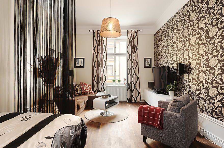 Коричневые обои. Некоторые думают, что такой цвет обоев будет скучен, но это не так. Главное условие будет правильно скомбинировать с другими цветами. Идеальным вариантом дизайнеры отмечают сочетание коричневого и белого цветов. Такой интерьер можно разбавить яркими аксессуарами в виде лампы или же картины. Вообще, все коричневые оттенки способны создать мягкую расслабляющуюся обстановку.