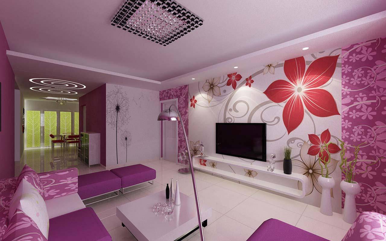 Сиреневые обои. Ощущения, которые вызывает данный цвет, можно сравнить с пробуждающей природой с приходом весны. Сиреневый цвет вызывает спокойствие и умиротворение. Но при этом не вызывают утомляемость, а, наоборот, способны разбавить скучный дизайн гостиной. Данный цвет можно хорошо скомбинировать с белым и серым цветами.