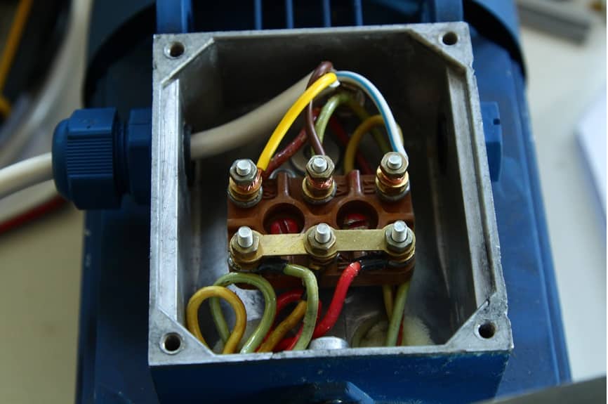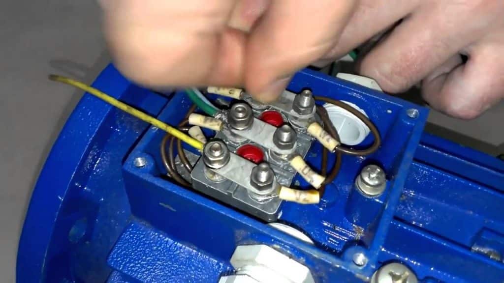 Если шильд отсутствует или информация на нем стерлась, то схему подключения можно узнать, открыв блок распределения начал обмотки (БРНО). Если вы увидите 6 выводов, имеющих клеммные соединения, можно определить тип включения обмоток. Гораздо хуже, когда борно имеет только три вывода, а подключение производится внутри корпуса. В этом случае нужно разобрать трехфазный электромотор, чтобы увидеть способ соединения.