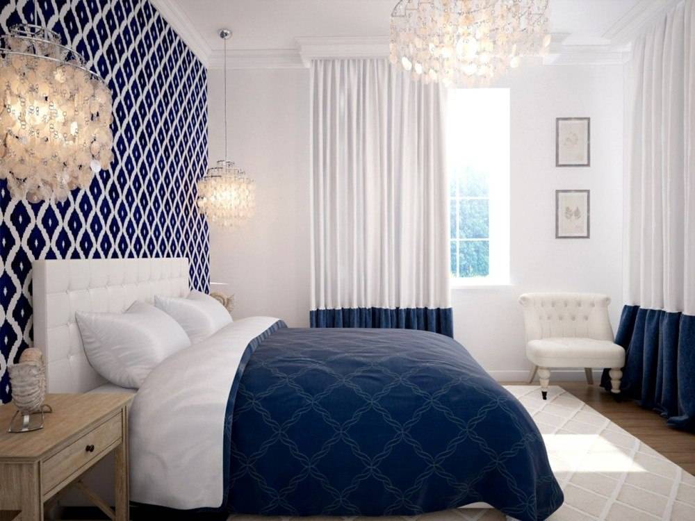 Синий цвет в интерьере спальни