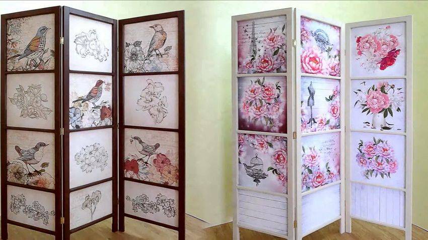 Известные, еще по старым советским фильмам, обычные ширмы с натянутой тканью на деревянной раме. При этом, они показывали свою элегантность объединенной с простотой, классический вид, сочетание с любым интерьером.