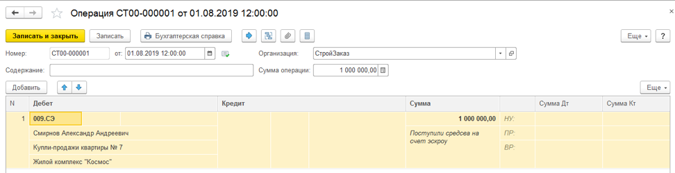 Продемонстрируем, как в программе БИТ.СТРОИТЕЛЬСТВО отразить данные операции.