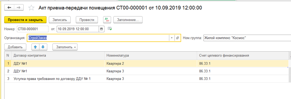 Передача квартир отражается документами «Разрешение на ввод объекта в эксплуатацию» и «Акт приема-передачи помещения».
