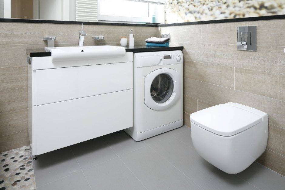 - Упрощение процесса уборки. Вам не придется протискиваться со шваброй между громоздкой машинкой и сантехникой;
