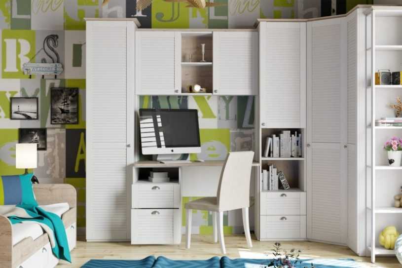 По форме выделяют: прямые (классические и самые распространенные), угловые (расположены буквой «Г») и радиусные (имеют обтекаемую форму). Перебрав различные варианты, были отобраны самые распространенные и актуальные виды шкафов для детской комнаты.