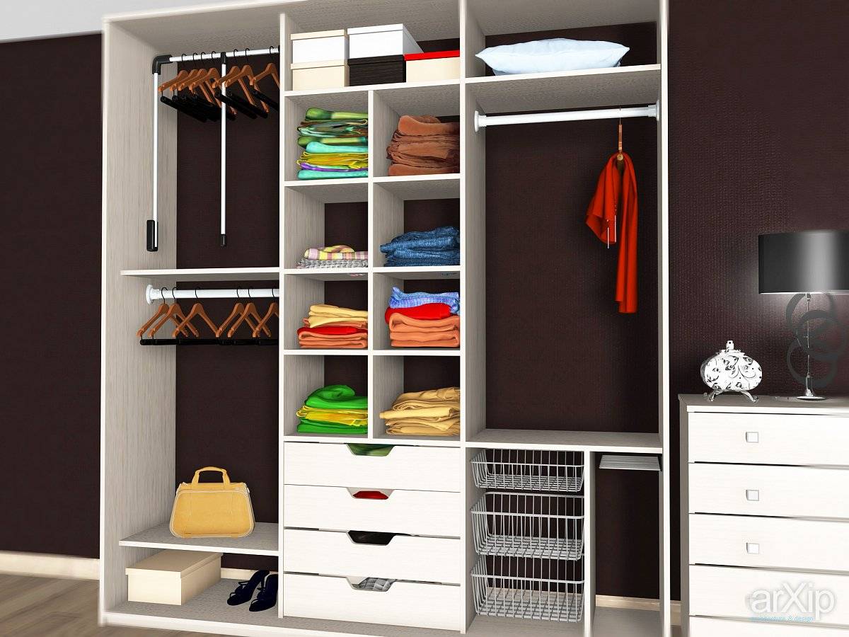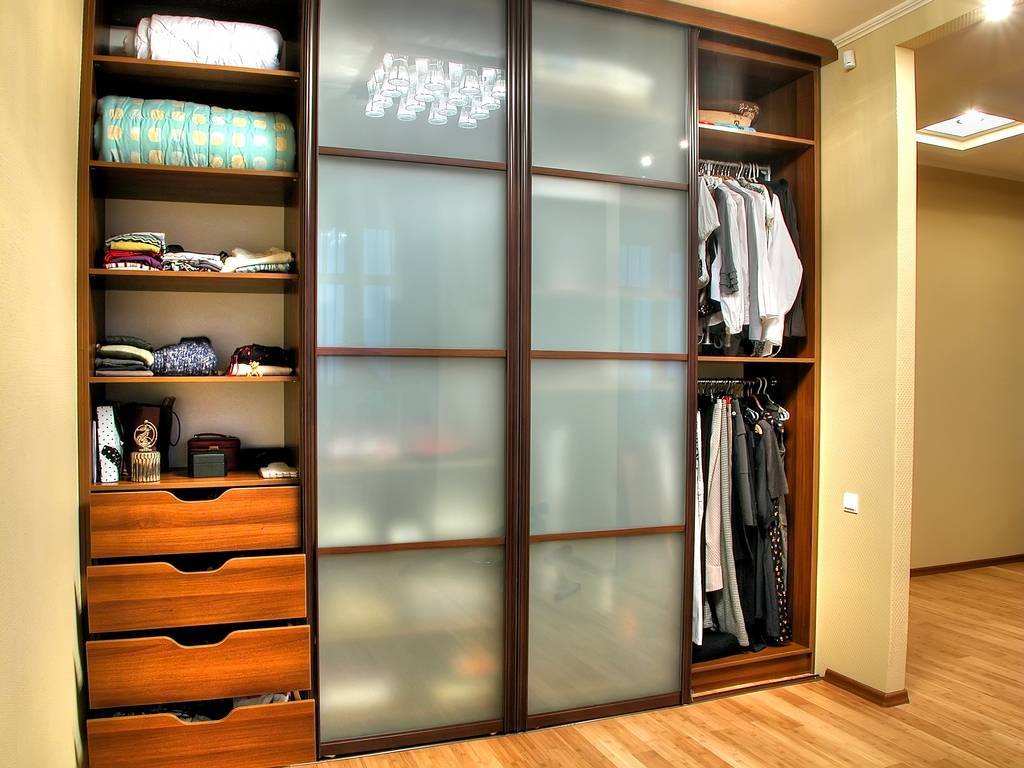 Минимальная глубина встраиваемого шкафа-купе 45 см. При такой глубине шкафа-купе в нем, возможно, устроить достаточно много вещей. Число дверок в таком шкафу-купе зависит от длины комнаты, он может быть как 2-дверный, так и 3-створчатый. В качестве шкафа может подойти кладовка, но продумать дизайн, надо пока не начат ремонт.