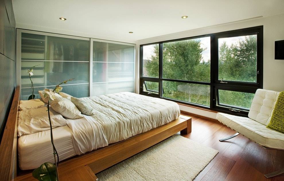 Минимализм. Такие шкафы также подойдут для спален в стиле хай-тек или лофт. Они имеют строгие формы, сдержанный дизайн. Фасады изготавливаются из пластика, стекла, алюминия или ДСП.