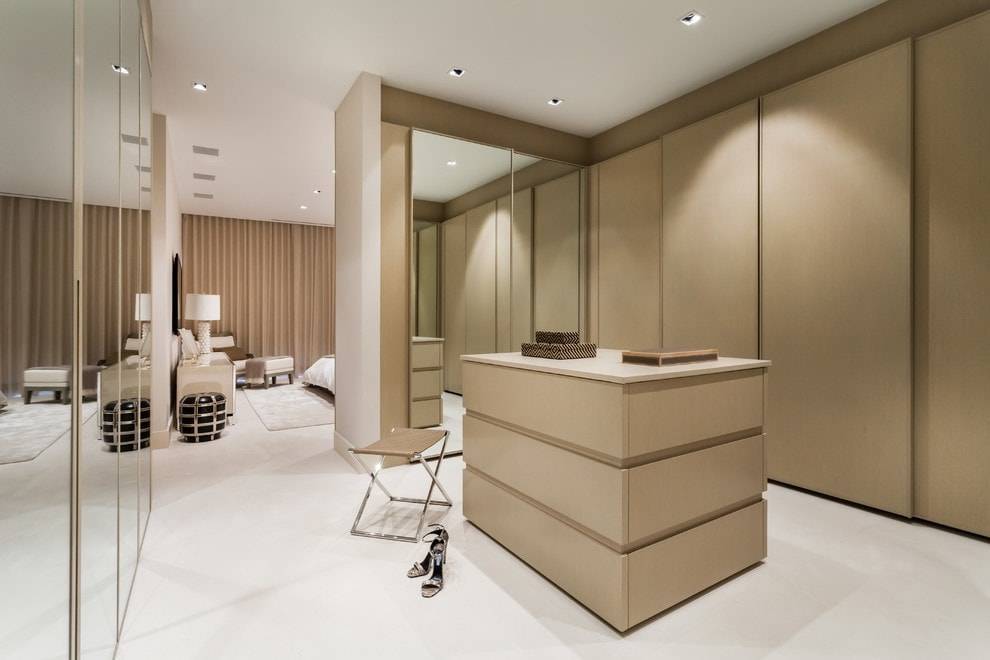 Арт-деко любит пространство, поэтому не отказывается себе в шкафах до потолка с большим количеством отделений.