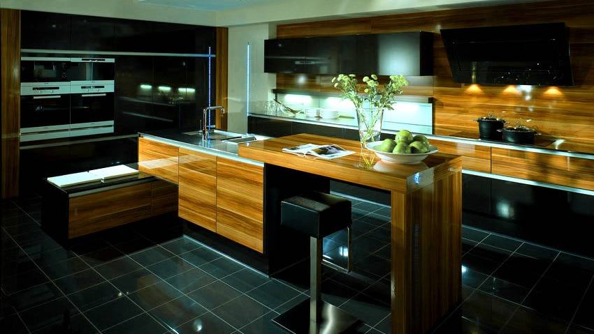 - Пластик. Эффектный и практичный материал, который используется при оформлении интерьеров в современных стилях: хай-тек, минимализм, техно и других. Его поверхность может быть матовой или глянцевой.