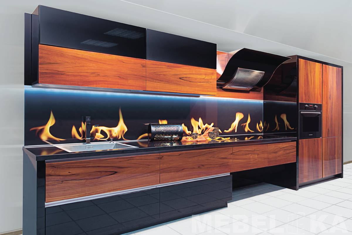 - Лакобель — окрашенное стекло. Цветовая гамма очень разнообразна. Подойдет для направлений лофт, хай-тек, минимализм, арт-деко, фьюжн и других современных стилей, которые допускают использование ненатуральных материалов.