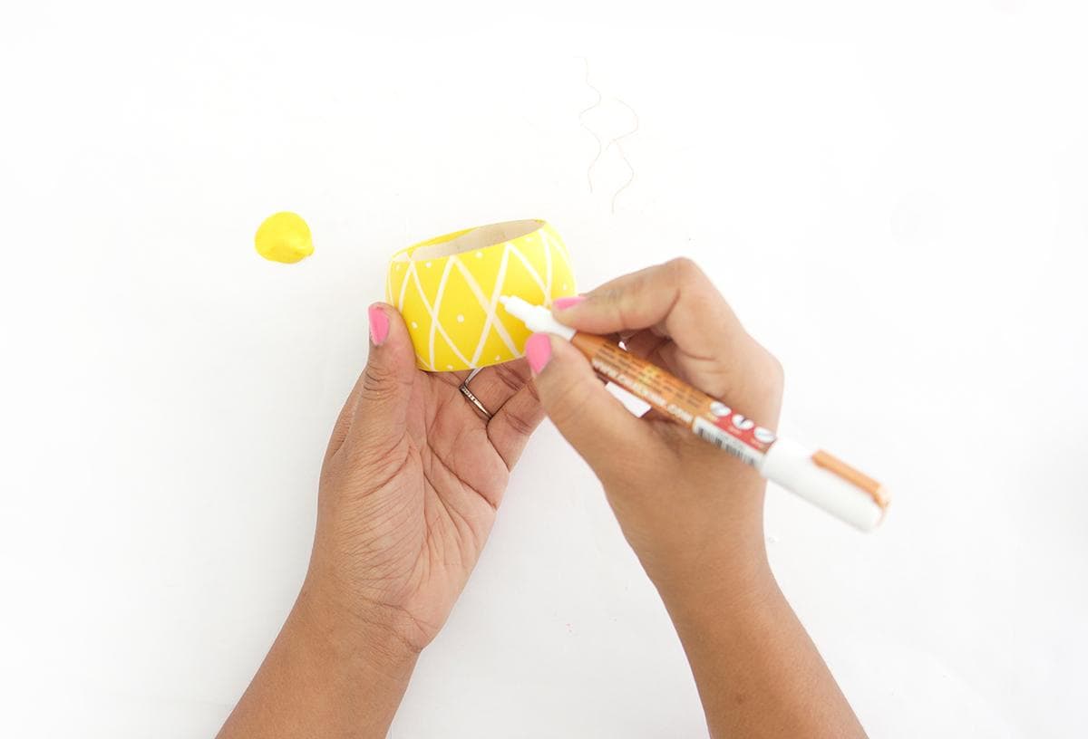 Белым маркером наносим узор на браслет. В данном случае ромбики.