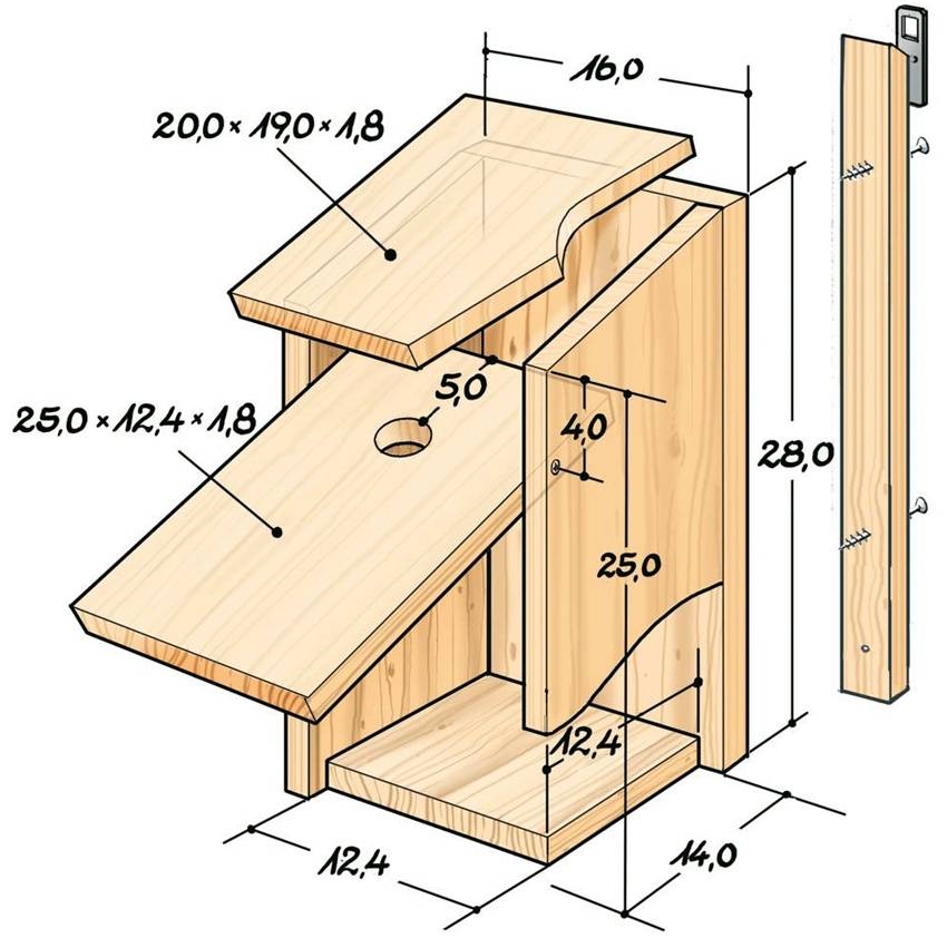 Помимо скворечников делают также синичники, трясогусочники, мухоловочники и другие домики для птиц. Эти модификации отличаются друг от друга размерами, формой и летком.