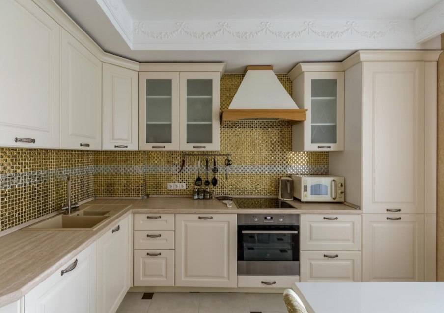 Кремовые фасады мебели в классическом стиле