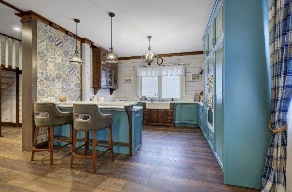 Что насчёт цвета стен, то оптимальный – белый. А вот второй тон – оливковый, голубой. Это самые беспроигрышные варианты, которые часто применяют в интерьерах типа «Прованс».